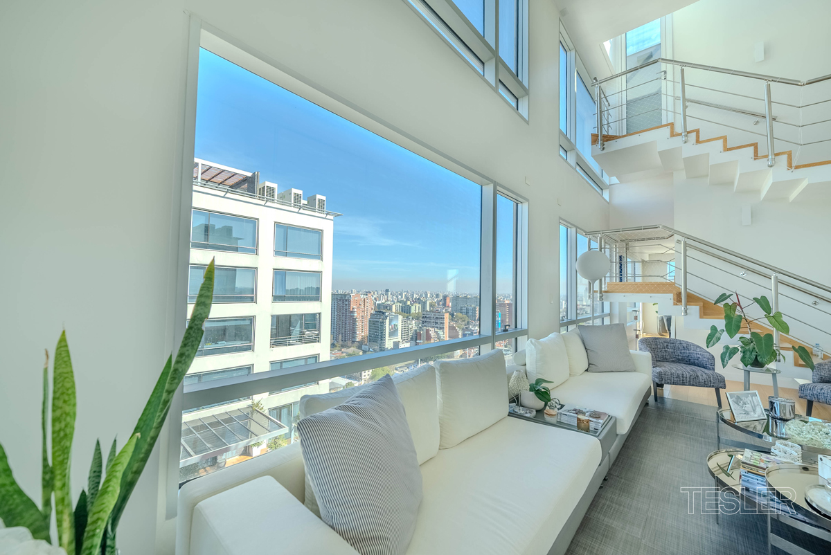 Av. Luis M. Campos y Zabala High-floor duplex in a tower with excellent light and views. Living and dining room. 4 bedrooms, 1 with private bathroom and walk-in closet. 2 bathrooms. Guest toilet. Daily dining area. Laundry room and staff quarters. 2 fixed parking spaces. Night-time security.