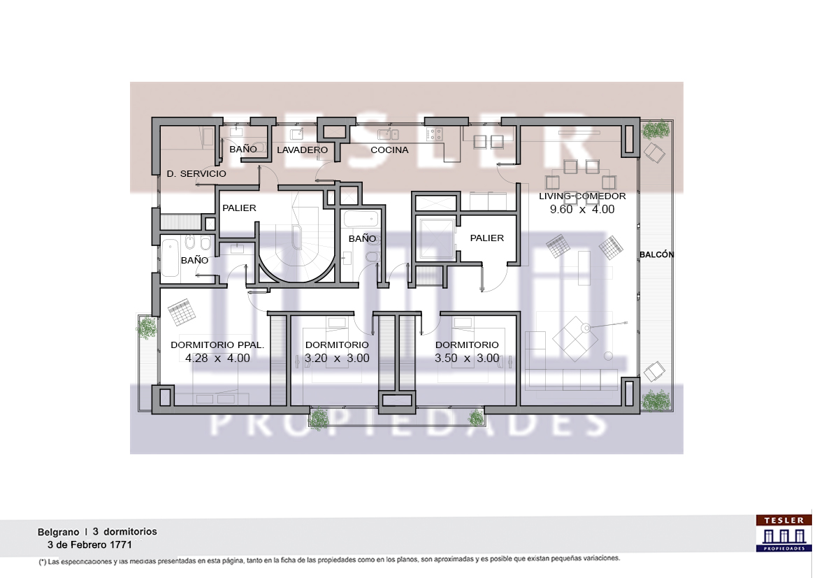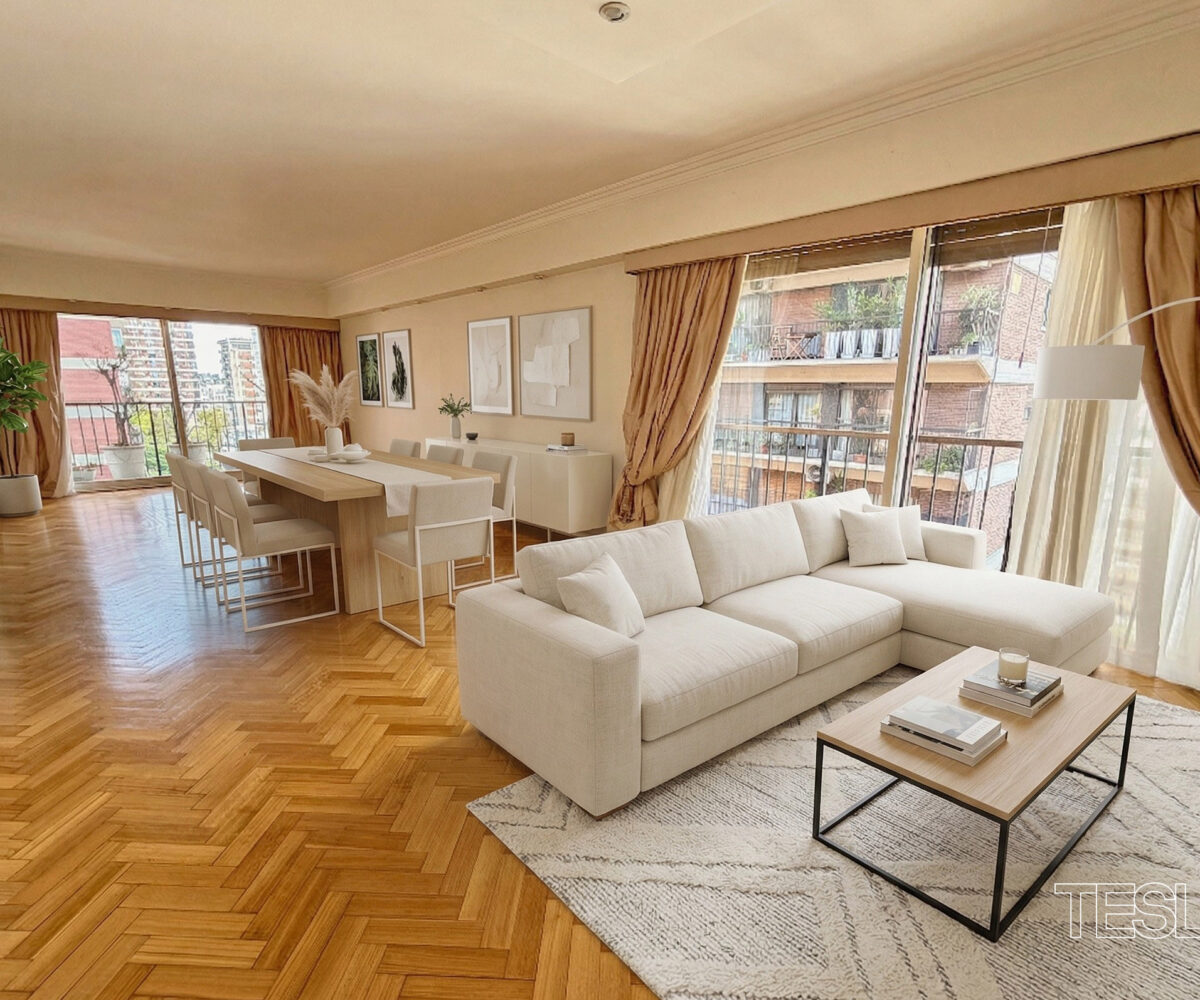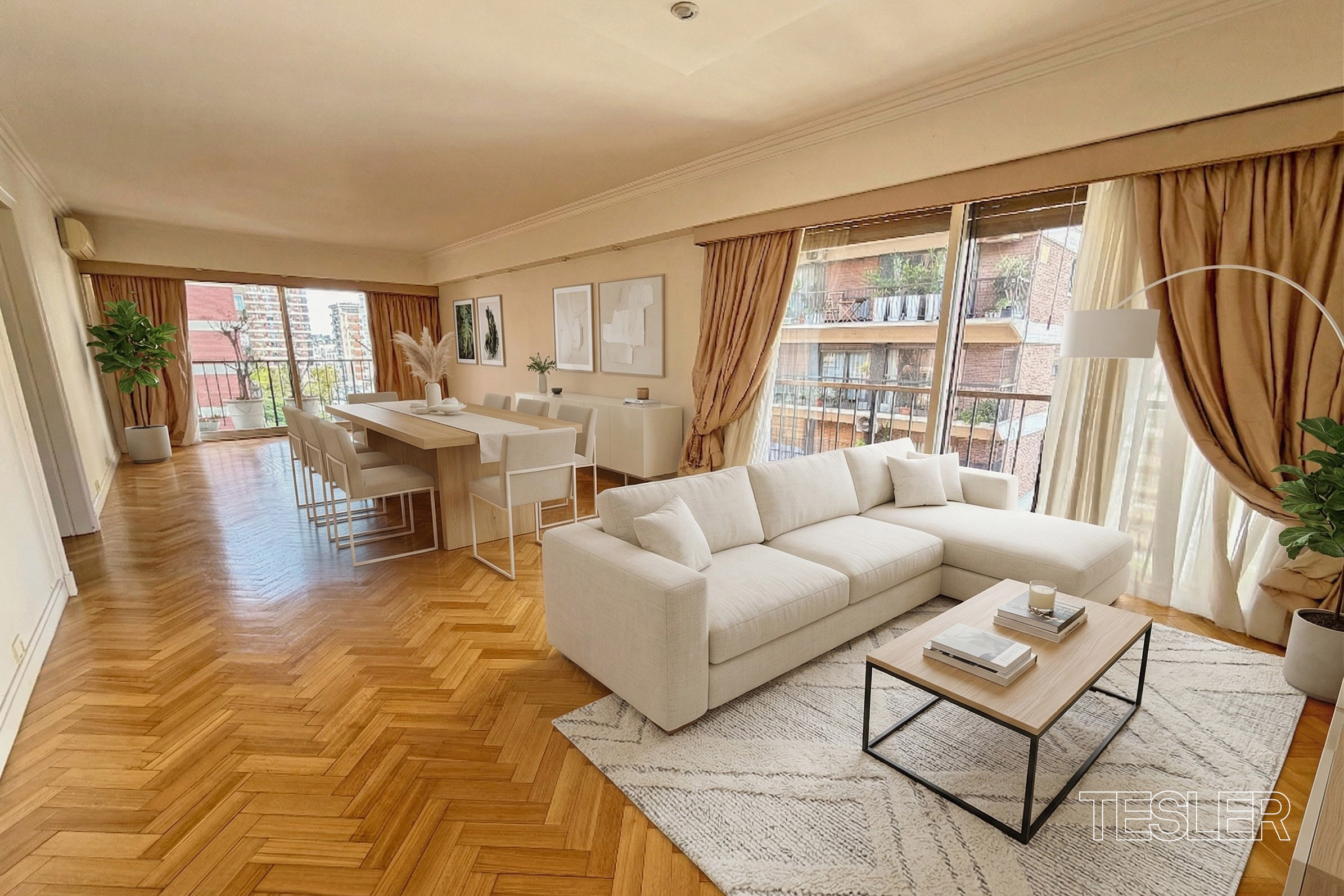 3 de febrero y La Pampa High-floor unit in a tower with excellent natural light. Living and dining room. 3 bedrooms, 1 with private bathroom. 2 bathrooms. Kitchen with breakfast area. Laundry room and staff quarters. Parking space. 24-hour security.