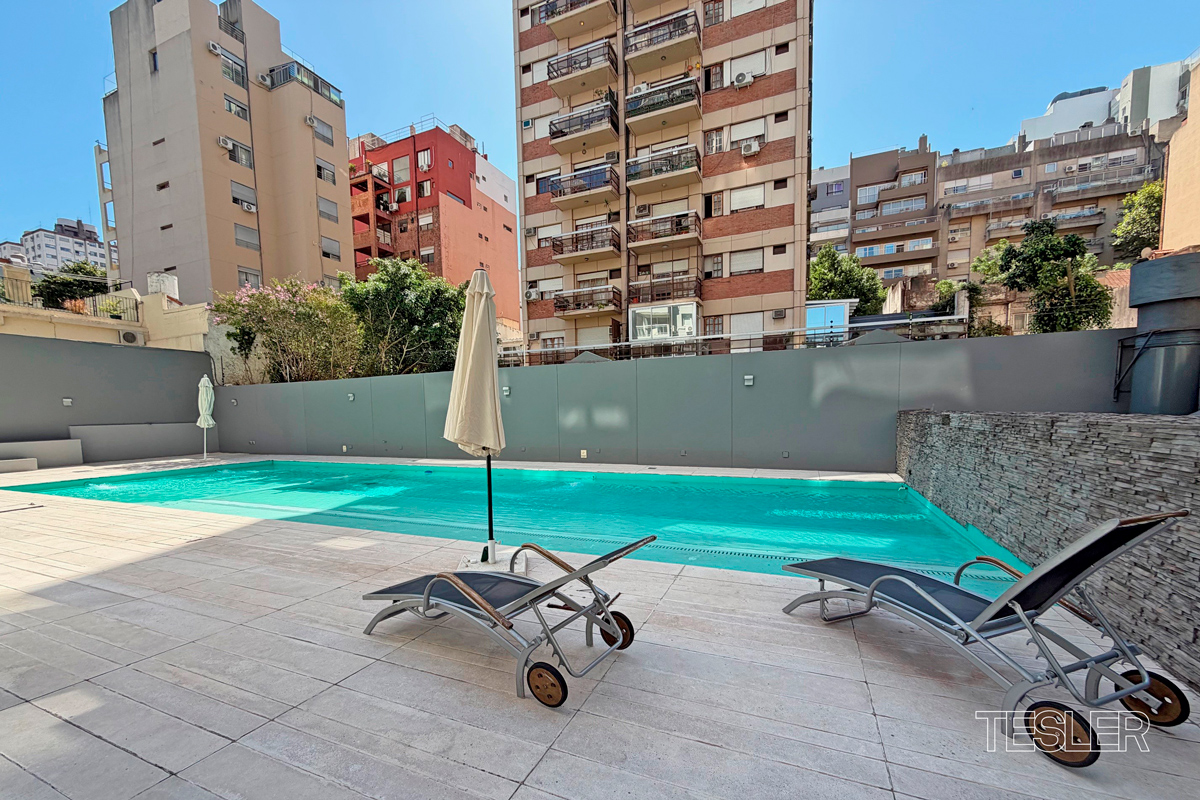Departamento – C.Larralde y R.Naón – Alquiler Muy luminoso. Living comedor. 2 dormitorios. 1 en suite. 2 baños completos. Cocina independiente. Lavadero. Balcón. Cochera fija. Vigilancia 24hs. Pileta, SUM, cowork, gimnasio.