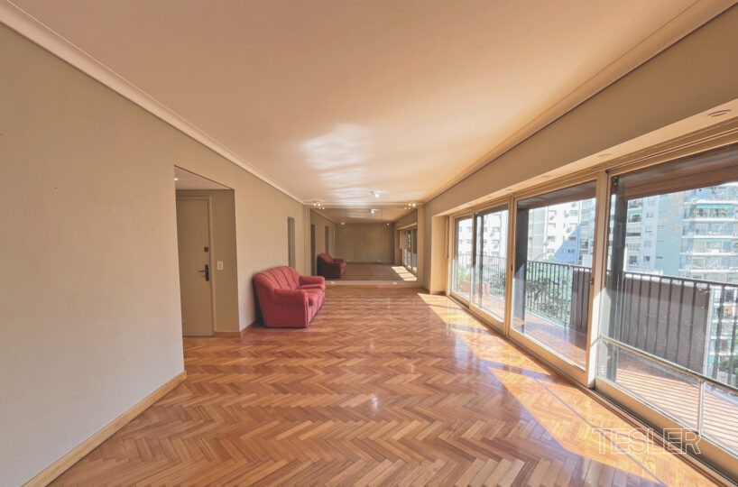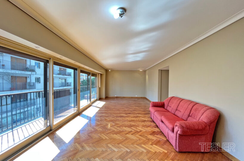 Piso muy alto en torre con excelente luz. Living comedor. 3 dormitorios. 1 en suite. 2 baños completos. Cocina con office. Lavadero y dependencia. Cochera. Vigilancia 24hs.