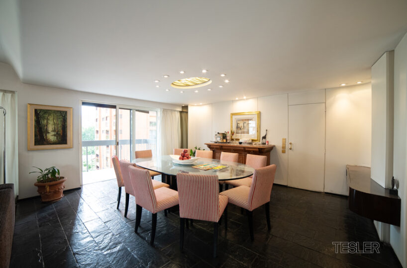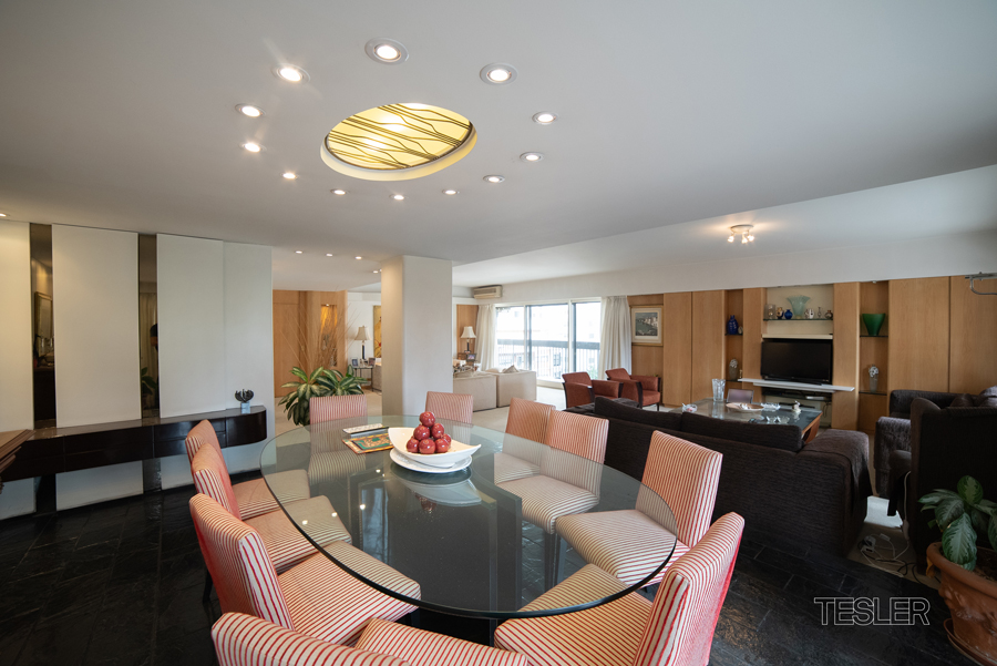 Departamento en torre con excelente luz. Living y comedor. 4 dormitorios. 1 en suite con vestidor. 3 baños completos. Toilette. Cocina con comedor diario. Lavadero y dependencia. Cochera fija. Vigilancia 24hs. Gimnasio y jardín con juegos para niños.