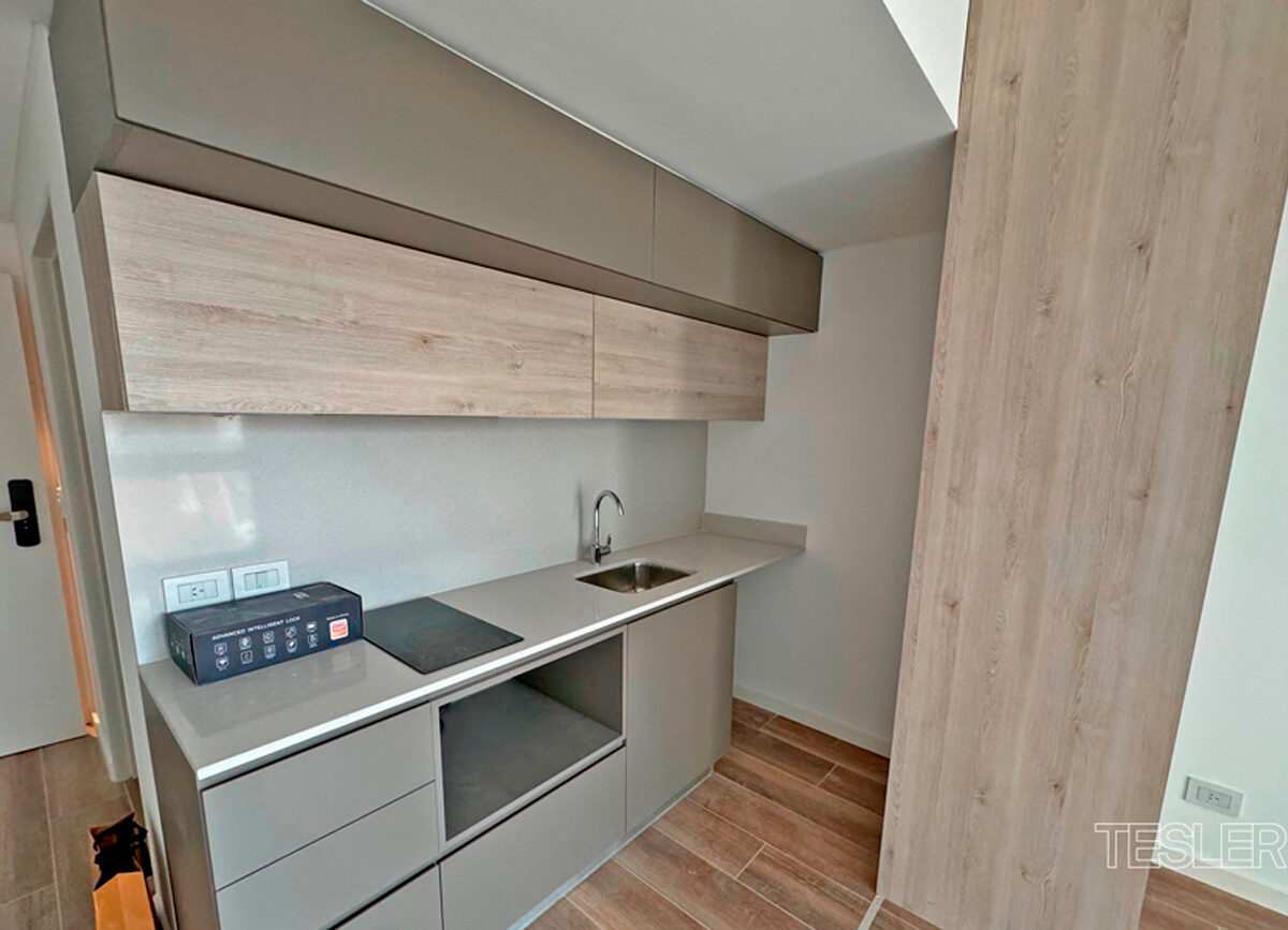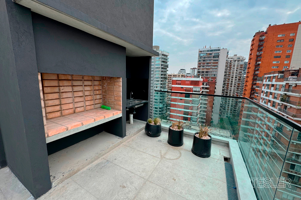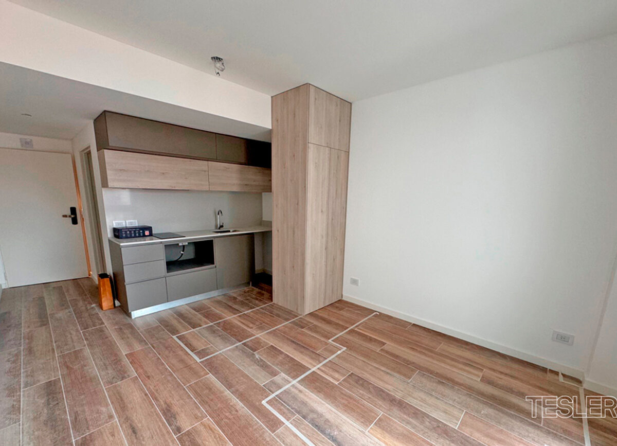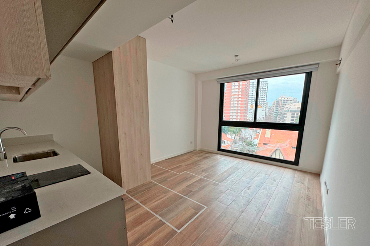 Mono ambiente muy luminoso. Baño completo. Cocina integrada. Apto profesional. Vigilancia 24hs. Pileta, quincho con parrilla, SUM y gimnasio. Alquiler más gastos.
