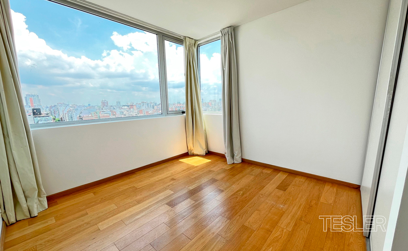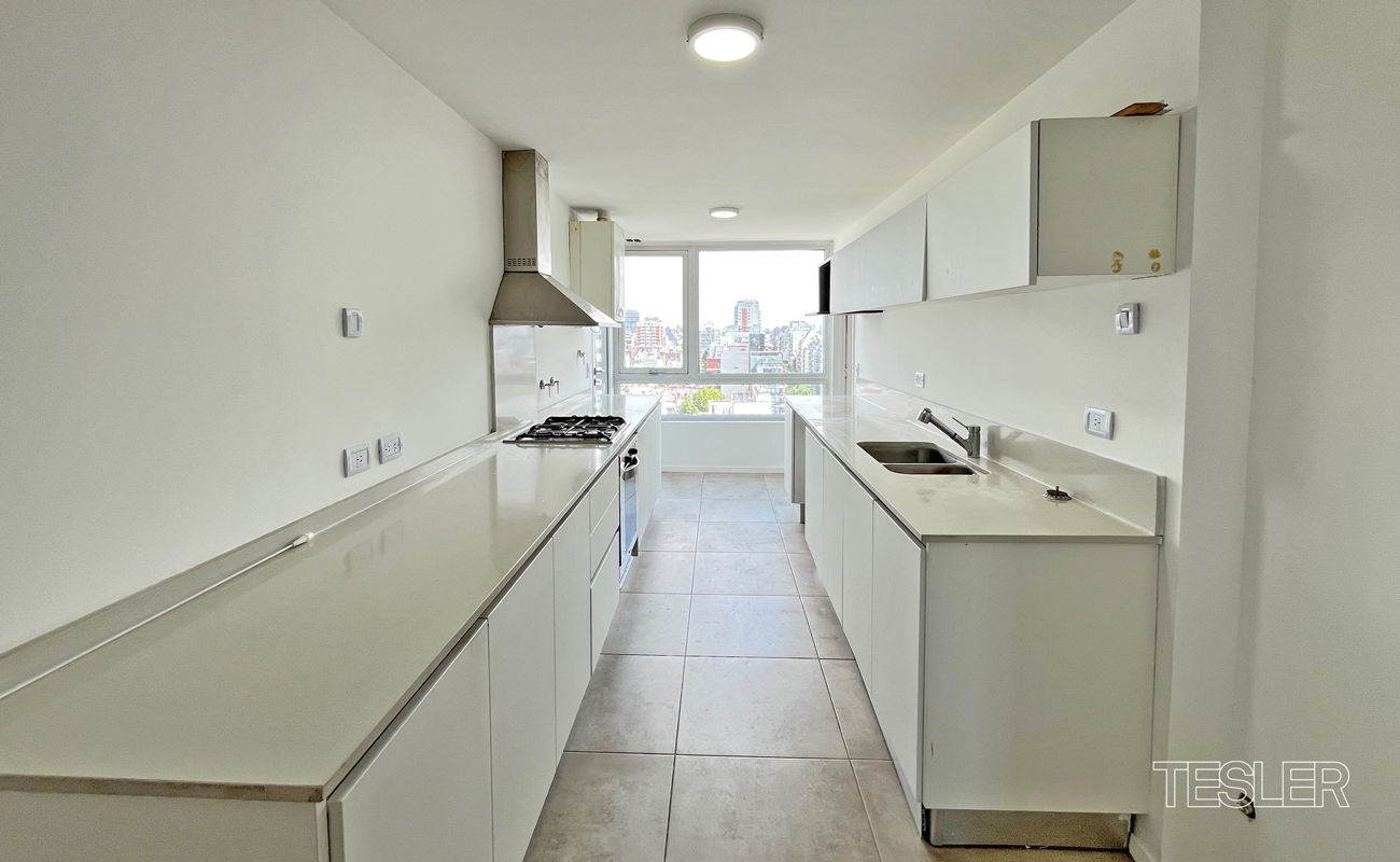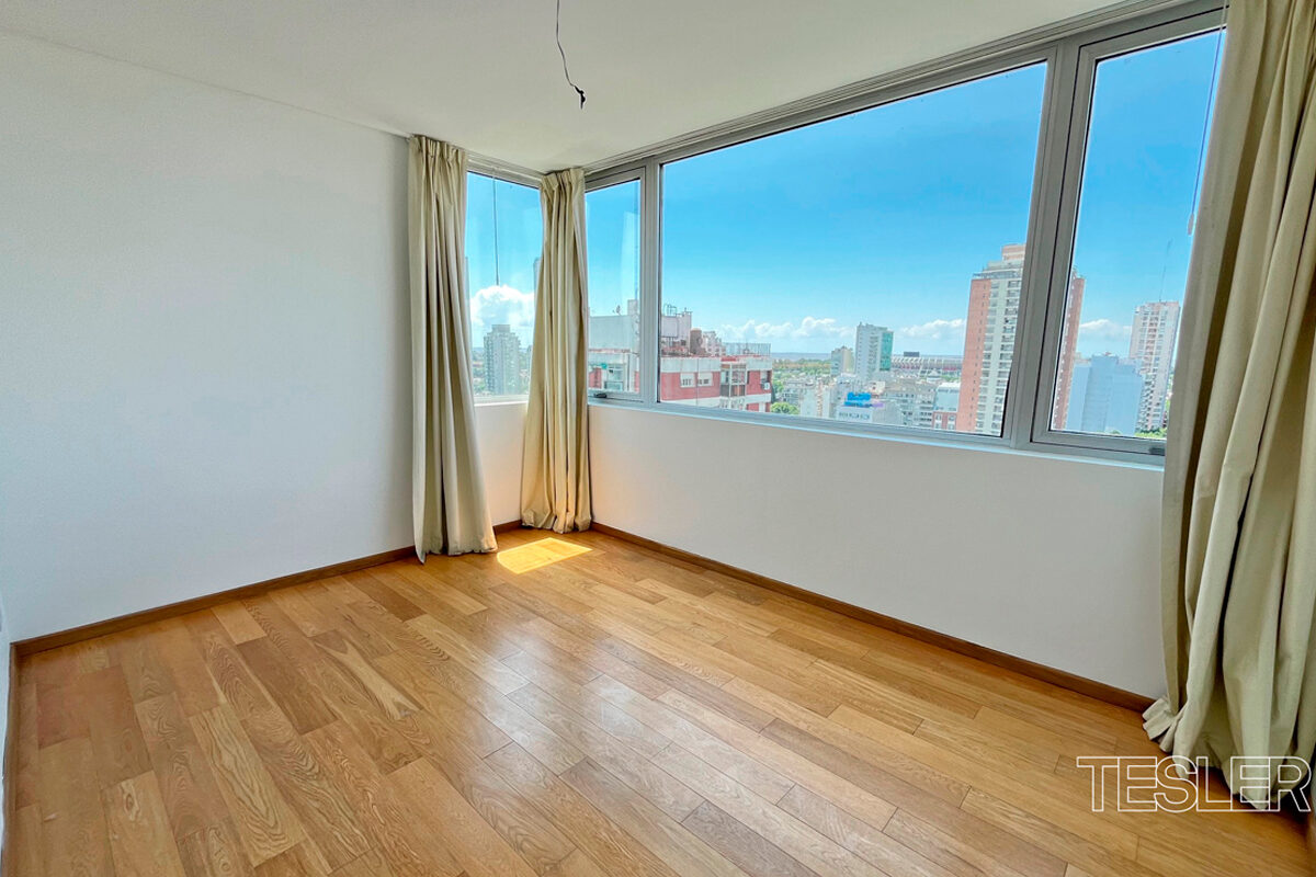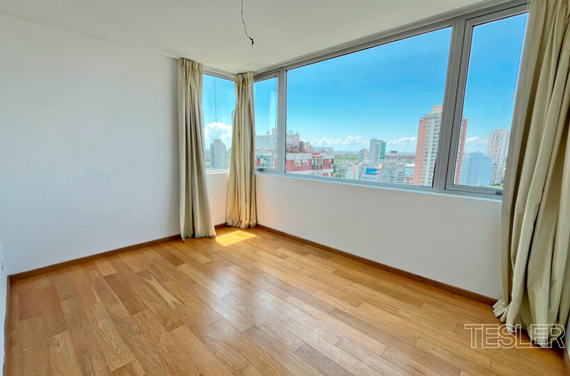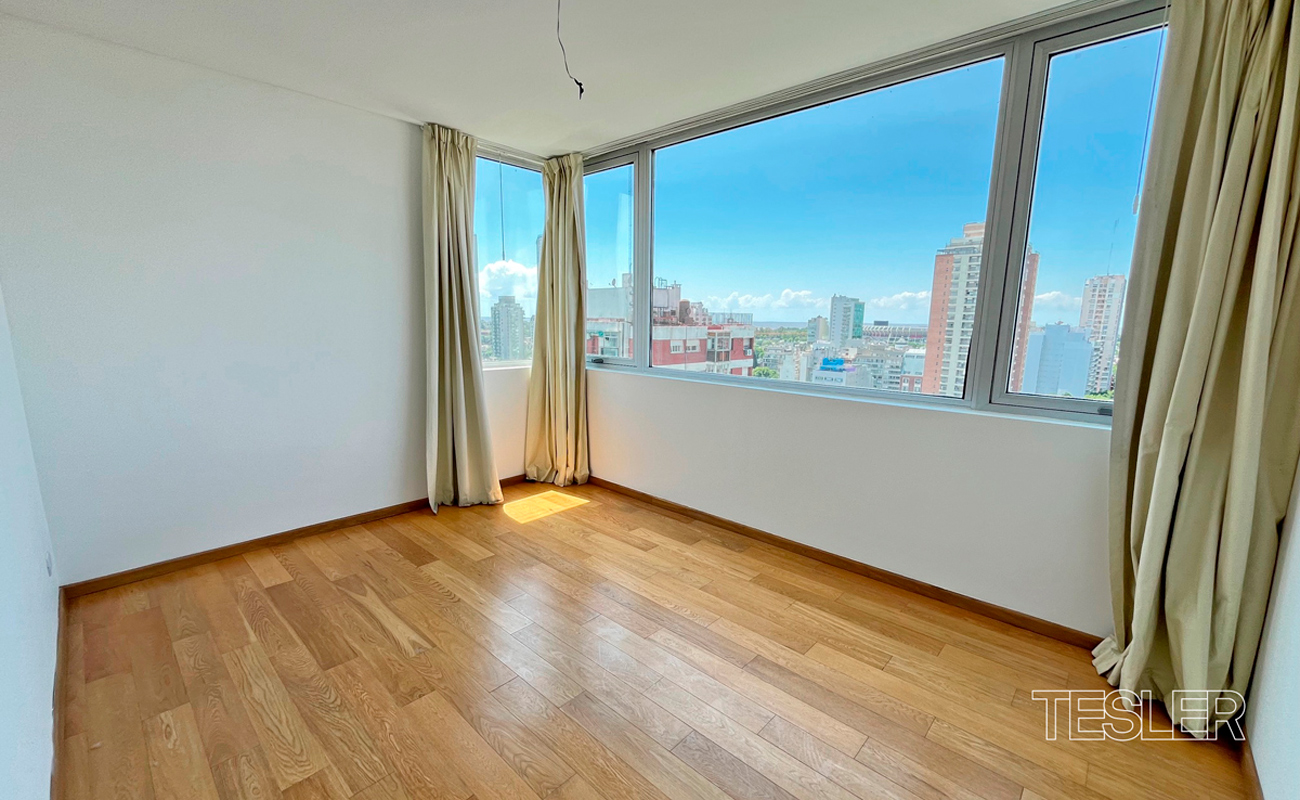 Living comedor. 3 dormitorios. 1 en suite con vestidor. 2 baños completos. Toilette. Cocina con office. Lavadero y dependencia. 2 cocheras fijas. Vigilancia 24hs. Pileta cubierta, pileta descubierta, salón de fiestas, gimnasio en piso 27°, juegos para niños, kids club, spa.