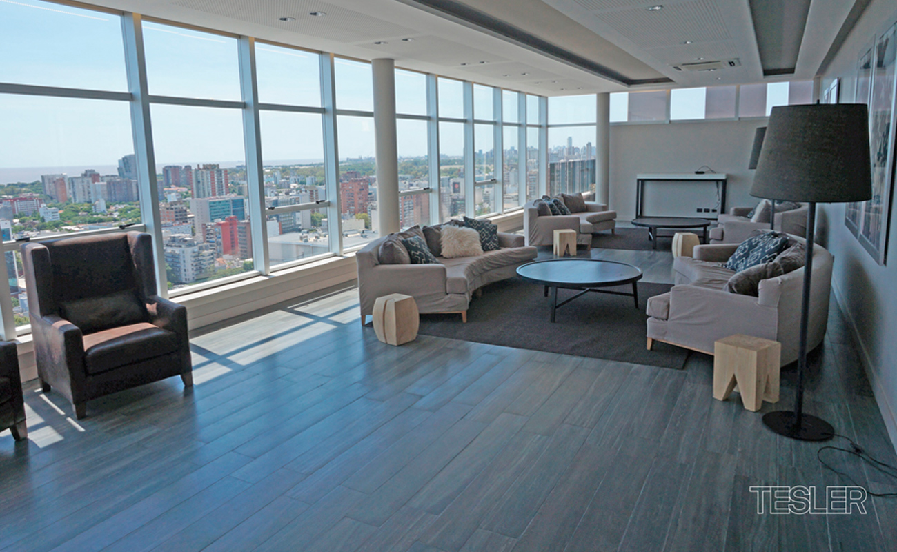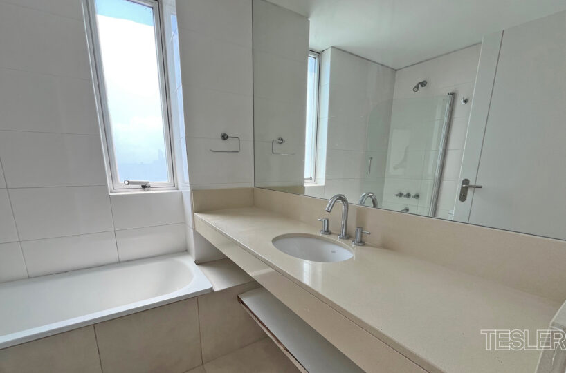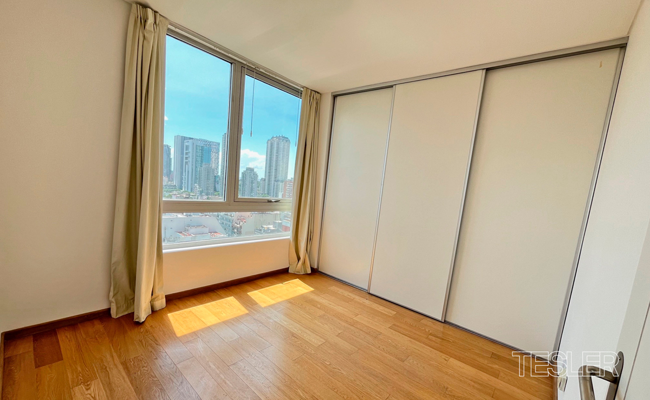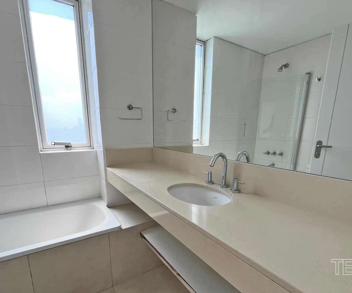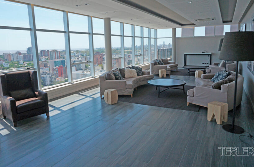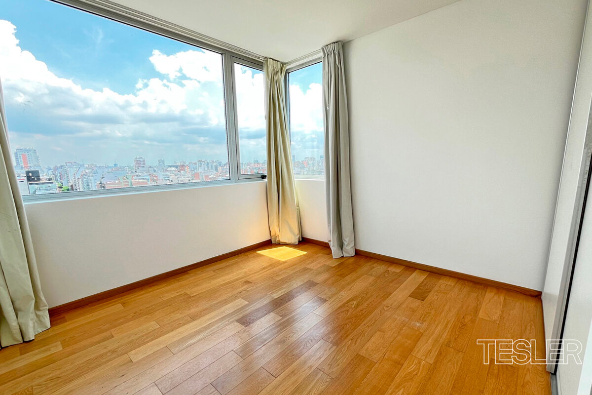 Living comedor. 3 dormitorios. 1 en suite con vestidor. 2 baños completos. Toilette. Cocina con office. Lavadero y dependencia. 2 cocheras fijas. Vigilancia 24hs. Pileta cubierta, pileta descubierta, salón de fiestas, gimnasio en piso 27°, juegos para niños, kids club, spa.
