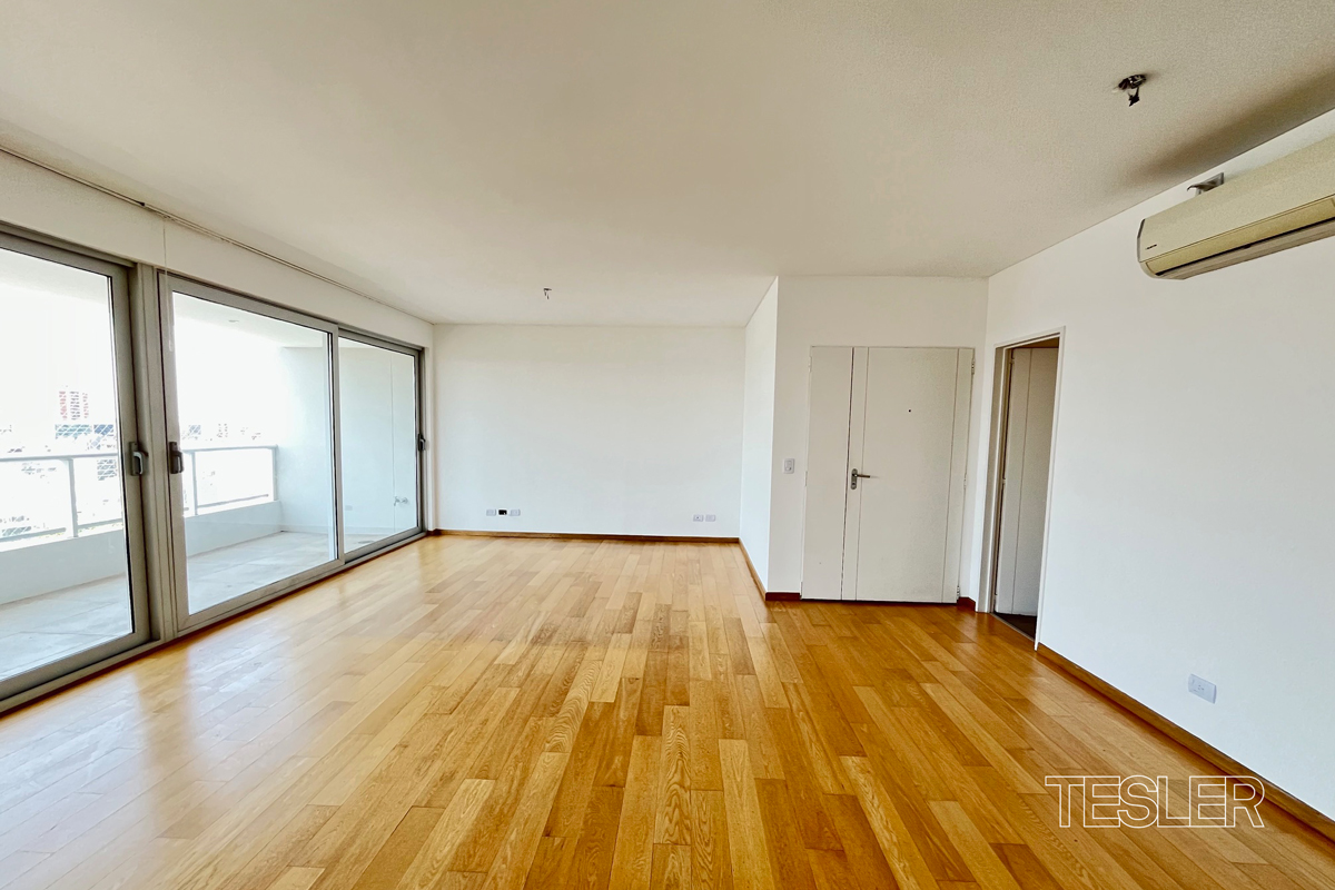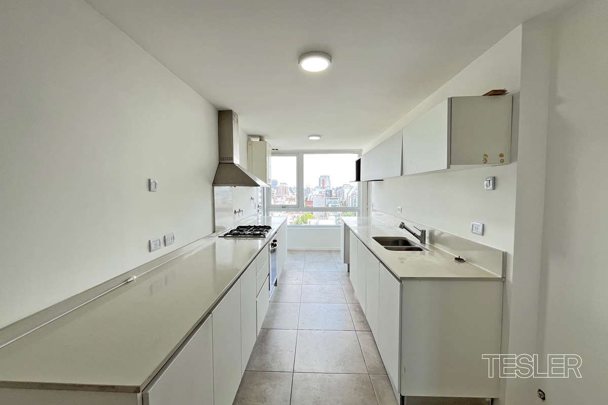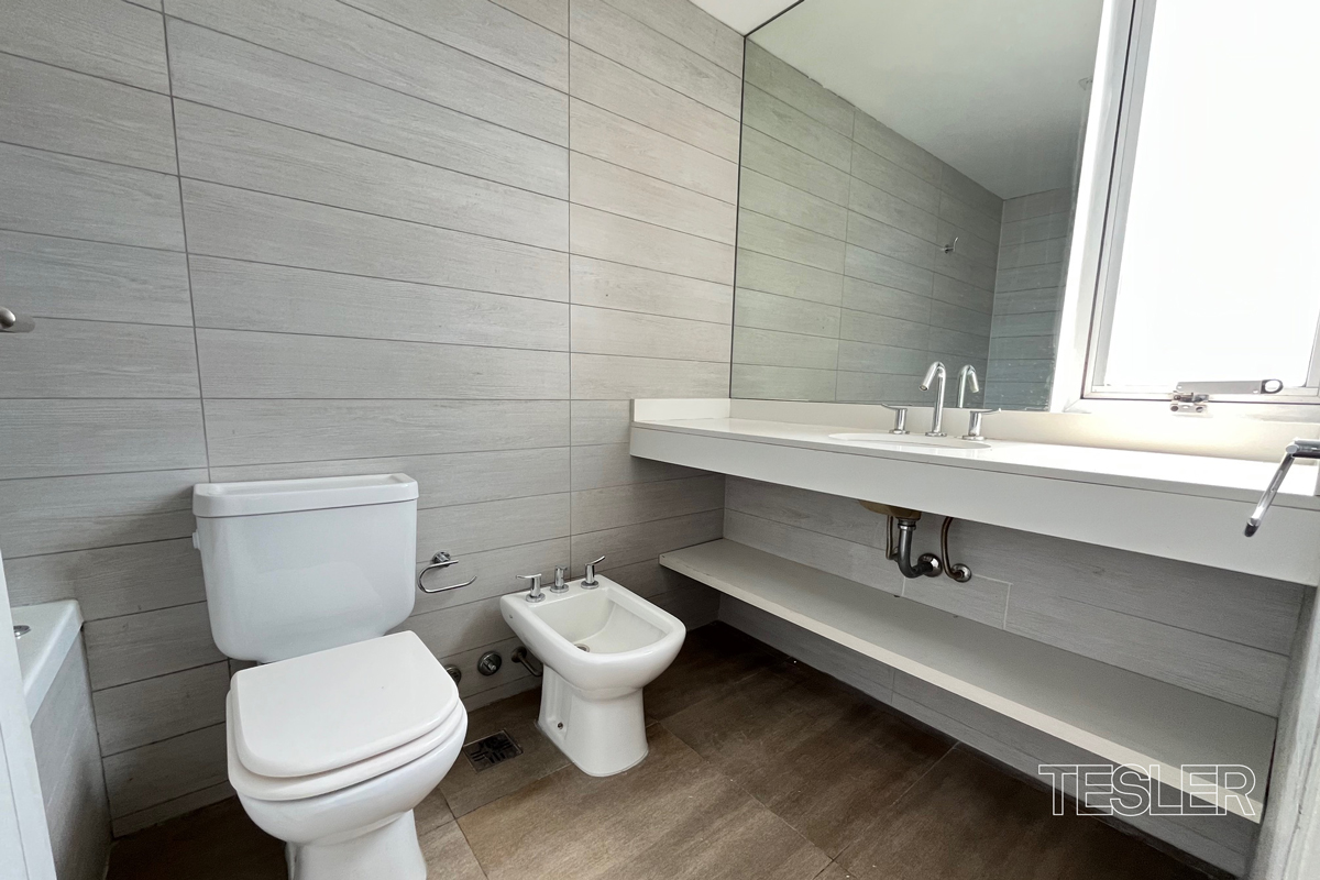 Living comedor. 3 dormitorios. 1 en suite con vestidor. 2 baños completos. Toilette. Cocina con office. Lavadero y dependencia. 2 cocheras fijas. Vigilancia 24hs. Pileta cubierta, pileta descubierta, salón de fiestas, gimnasio en piso 27°, juegos para niños, kids club, spa. Alquiler más gastos.