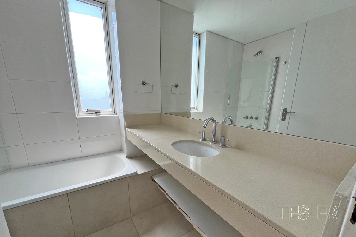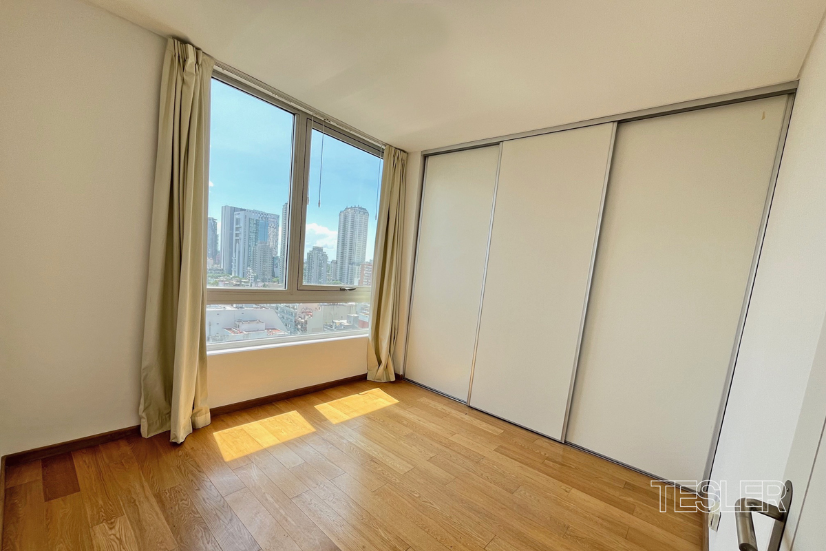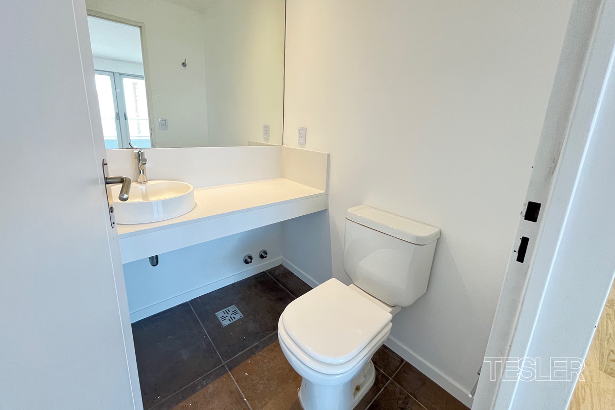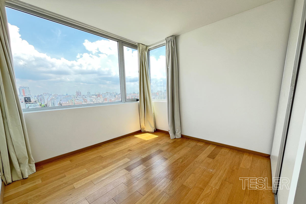 Living comedor. 3 dormitorios. 1 en suite con vestidor. 2 baños completos. Toilette. Cocina con office. Lavadero y dependencia. 2 cocheras fijas. Vigilancia 24hs. Pileta cubierta, pileta descubierta, salón de fiestas, gimnasio en piso 27°, juegos para niños, kids club, spa. Alquiler más gastos.