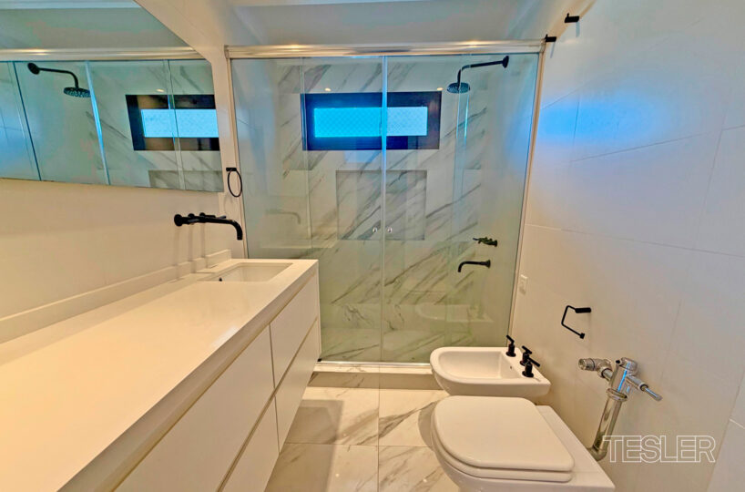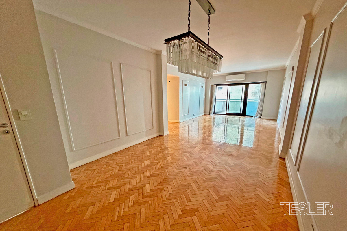Piso alto totalmente reciclado a nuevo. Living comedor. 3 dormitorios. 1 en suite. 2 baños completos. Amplia cocina con comedor diario. Lavadero. Baño de servicio. Balcón corrido. Cochera fija y cubierta. Vigilancia 24hs.