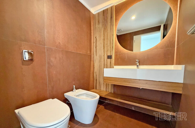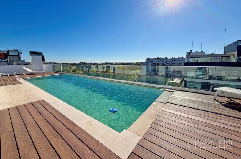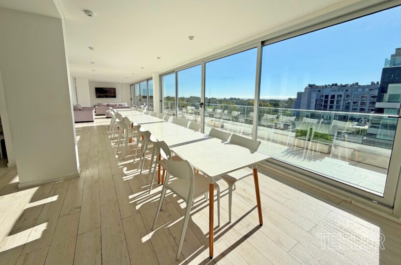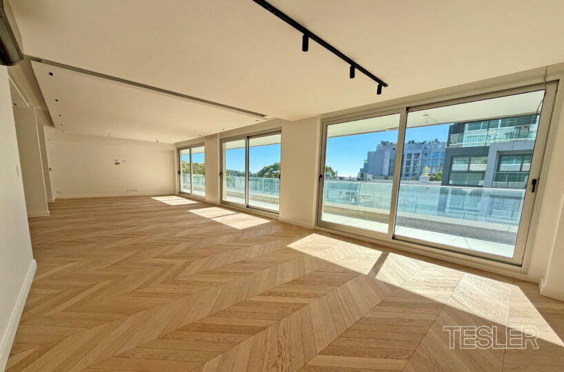 A estrenar. Entrega inmediata. Living comedor apaisado. 3 dormitorios en suite con vestidor. 3 baños completos. Toilette. Cocina equipada con artefactos Miele. Comedor diario. Lavadero y baño de servicio. 2 cocheras fijas. Vigilancia 24hs. Pileta cubierta, pileta descubierta, gimnasio, spa y SUM con parrilla.