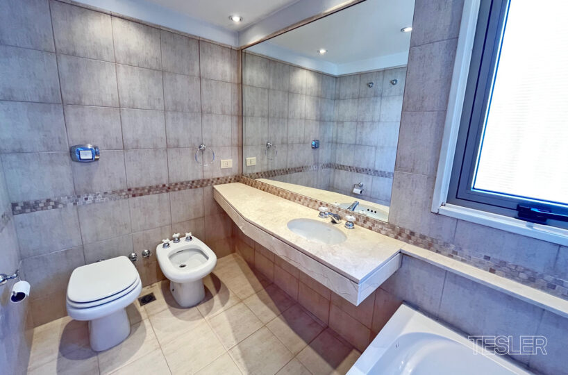 Torre con amenities. Impecable. Living comedor. 3 dormitorios, 1 en suite. 2 baños completos. Cocina con office. Lavadero independiente. Cochera fija. Vigilancia 24hs. Pileta, SUM, gimnasio, parrilla y juegos para niños.