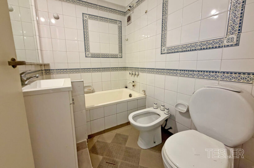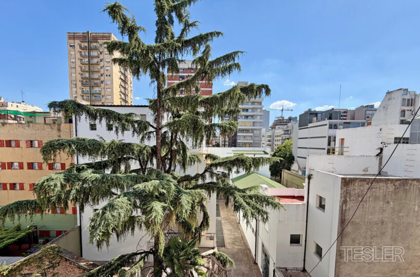 Semipiso con palier privado. Living comedor. 3 dormitorios. 2 baños completos. Balcón corrido. Cocina independiente. Lavadero y dependencia. Cochera.