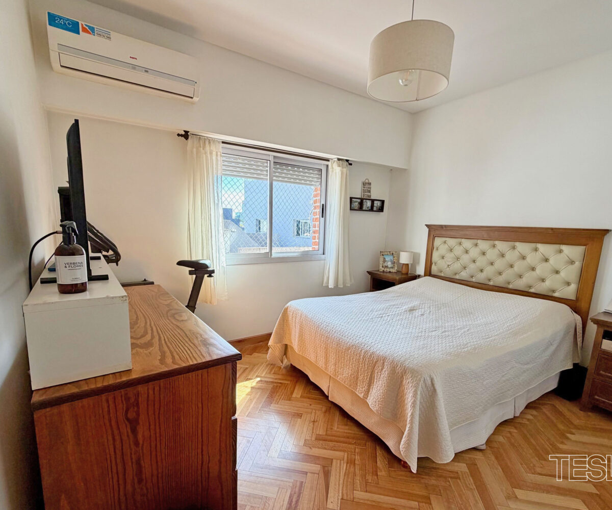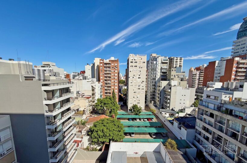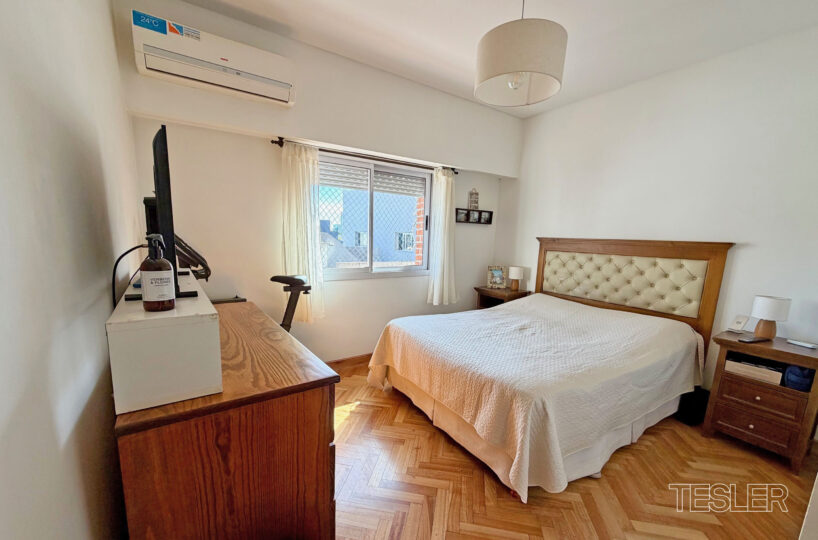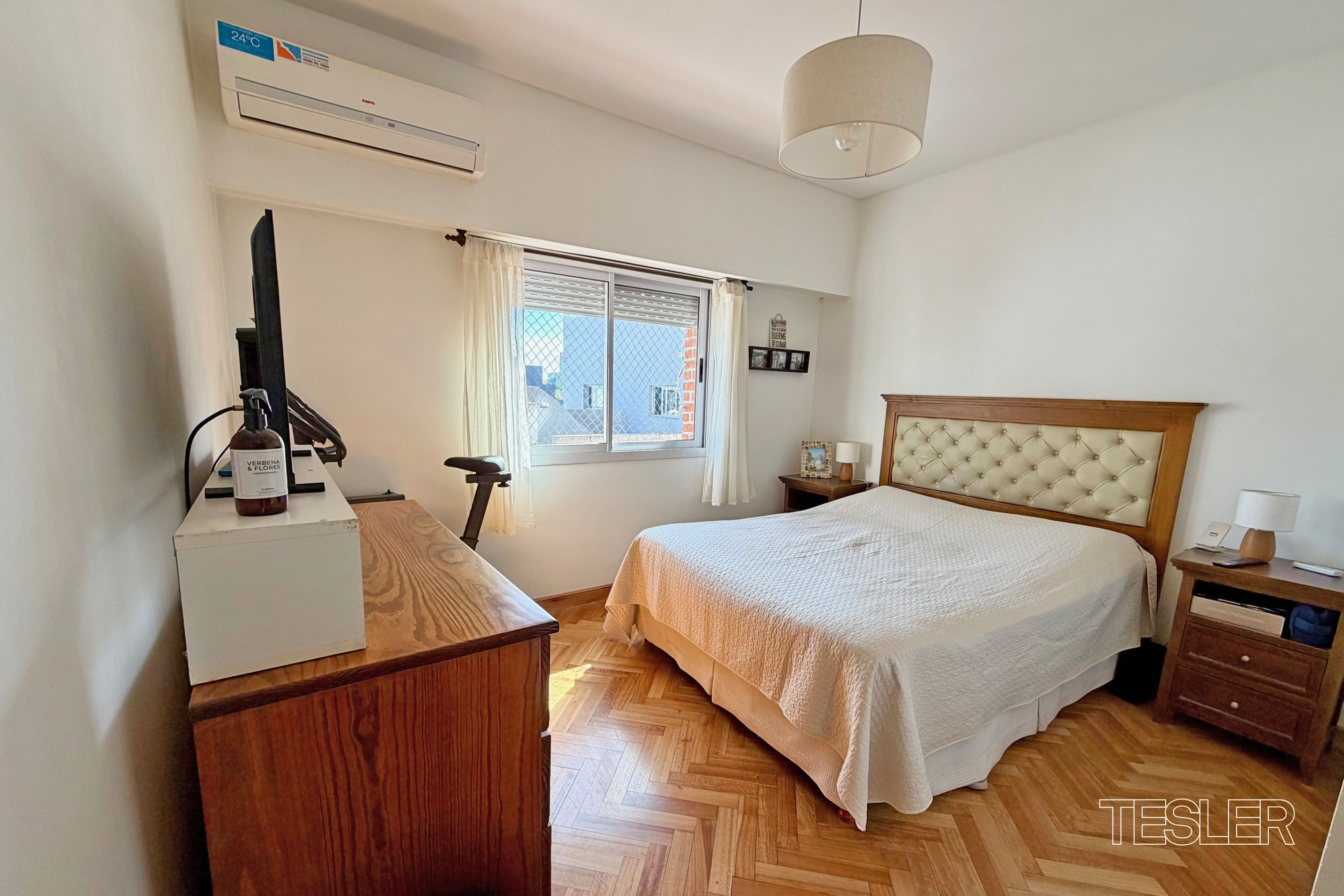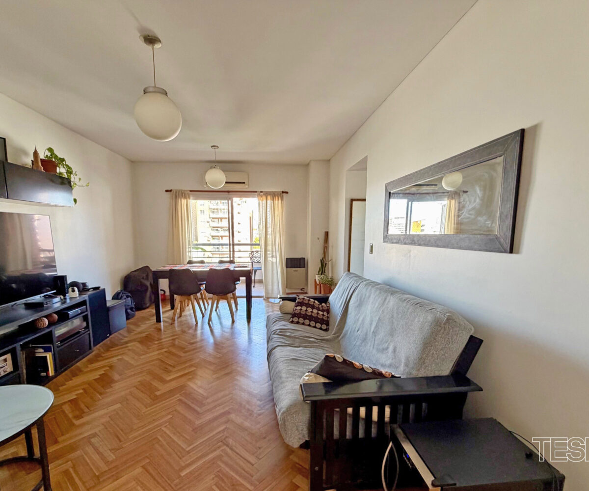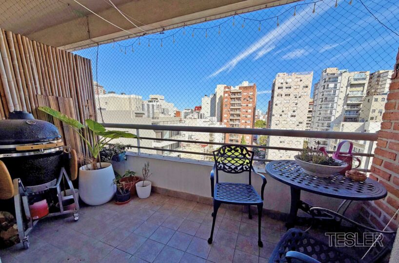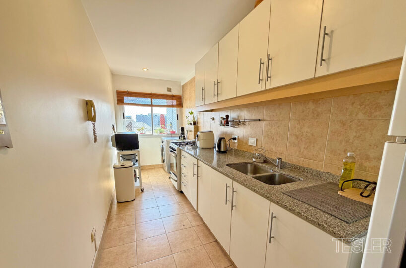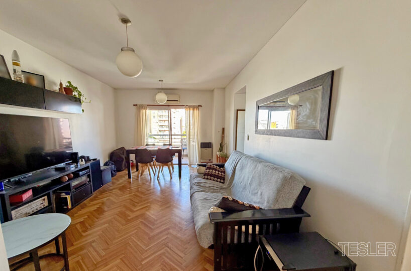 Piso alto en torre con excelente luz. Living comedor. 2 dormitorios. Baño completo y toilette. Balcón. Cocina independiente. Lavadero. Cochera fija. Vigilancia nocturna y 24hs los fines de semana.