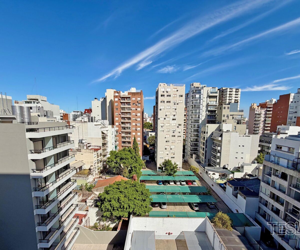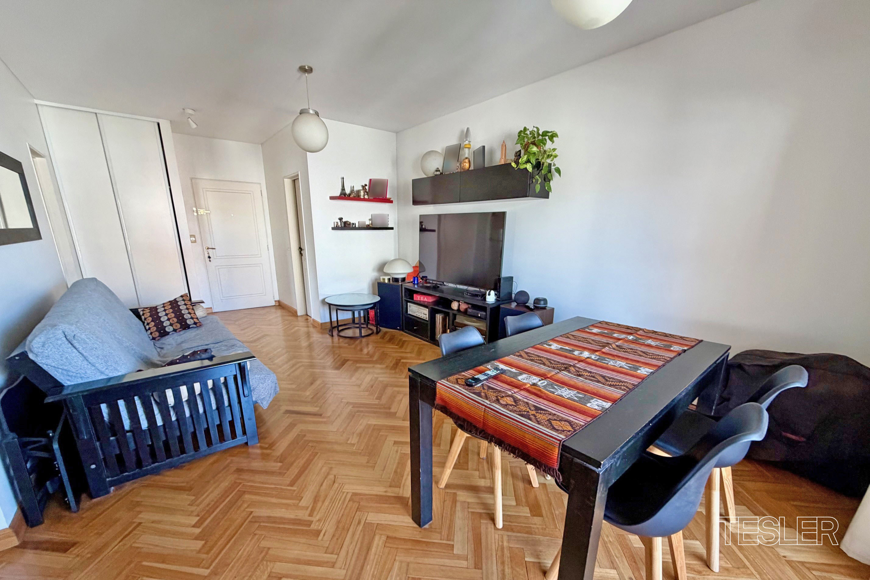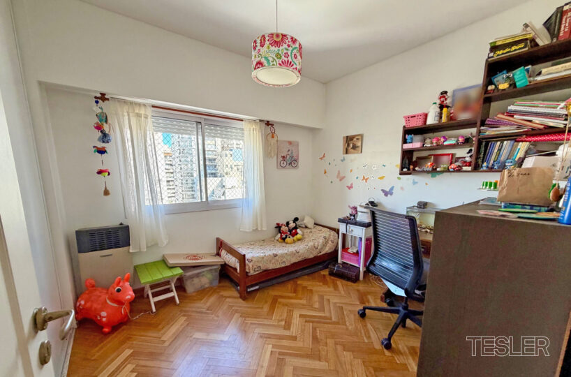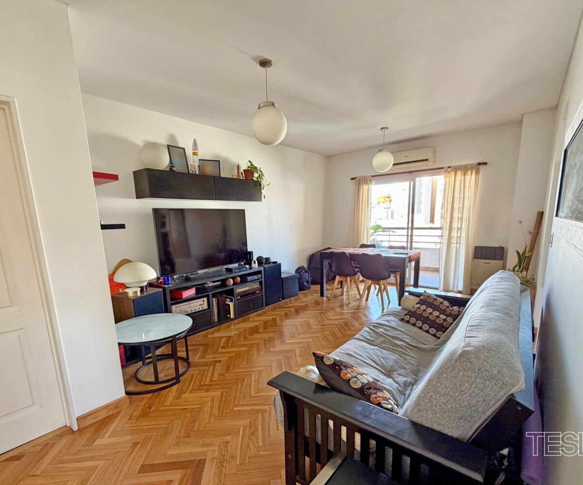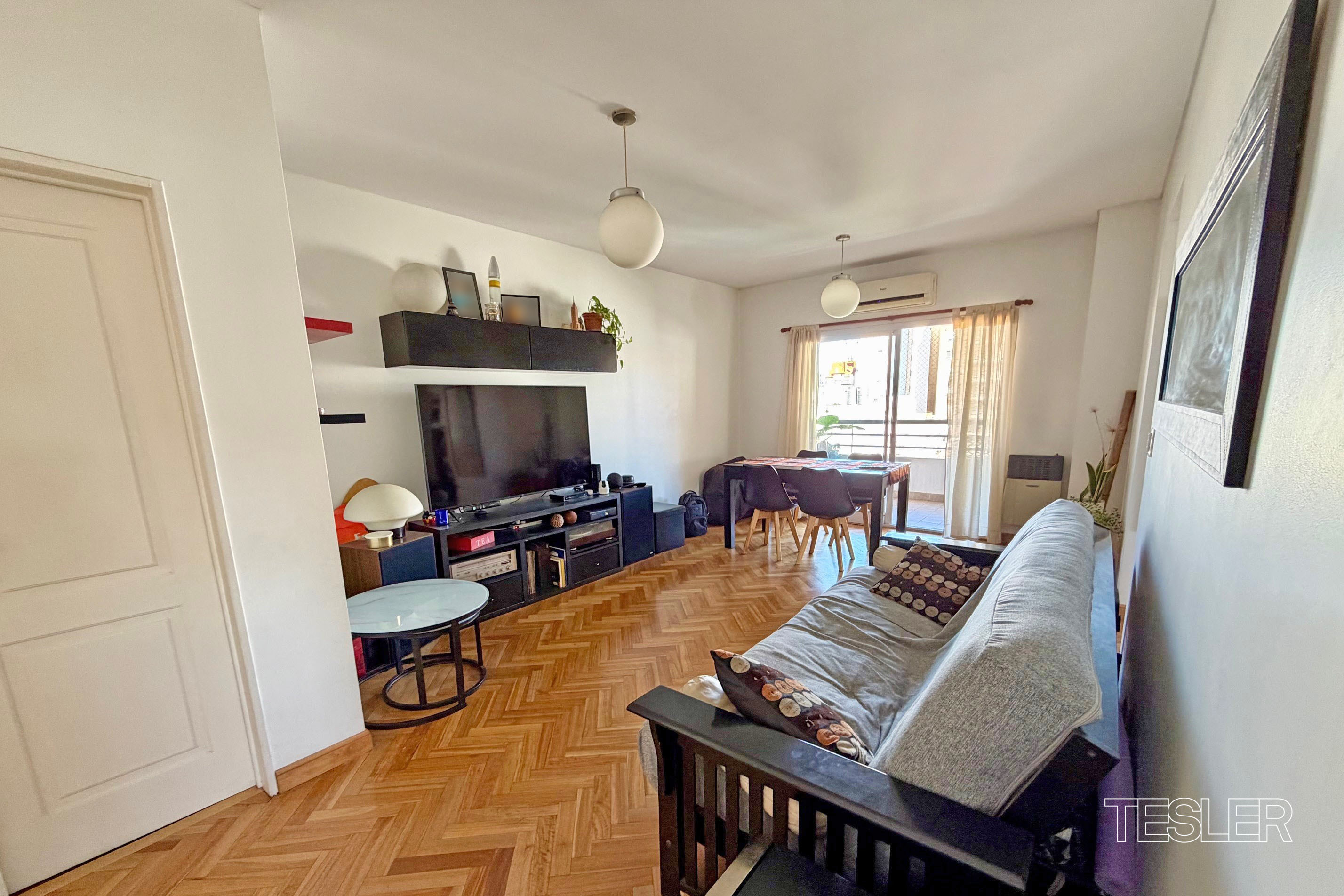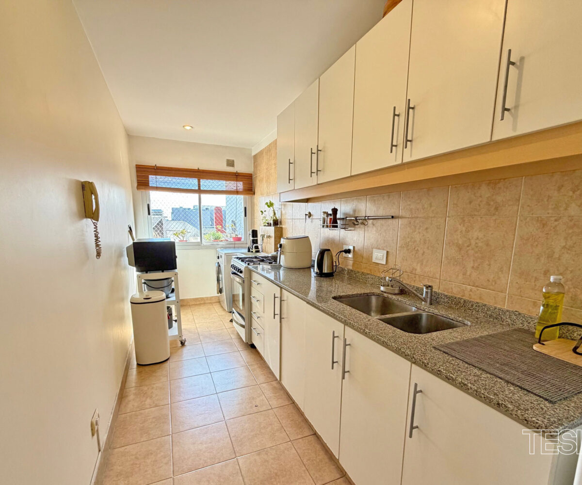 Piso alto en torre con excelente luz. Living comedor. 2 dormitorios. Baño completo y toilette. Balcón. Cocina independiente. Lavadero. Cochera fija. Vigilancia nocturna y 24hs los fines de semana.