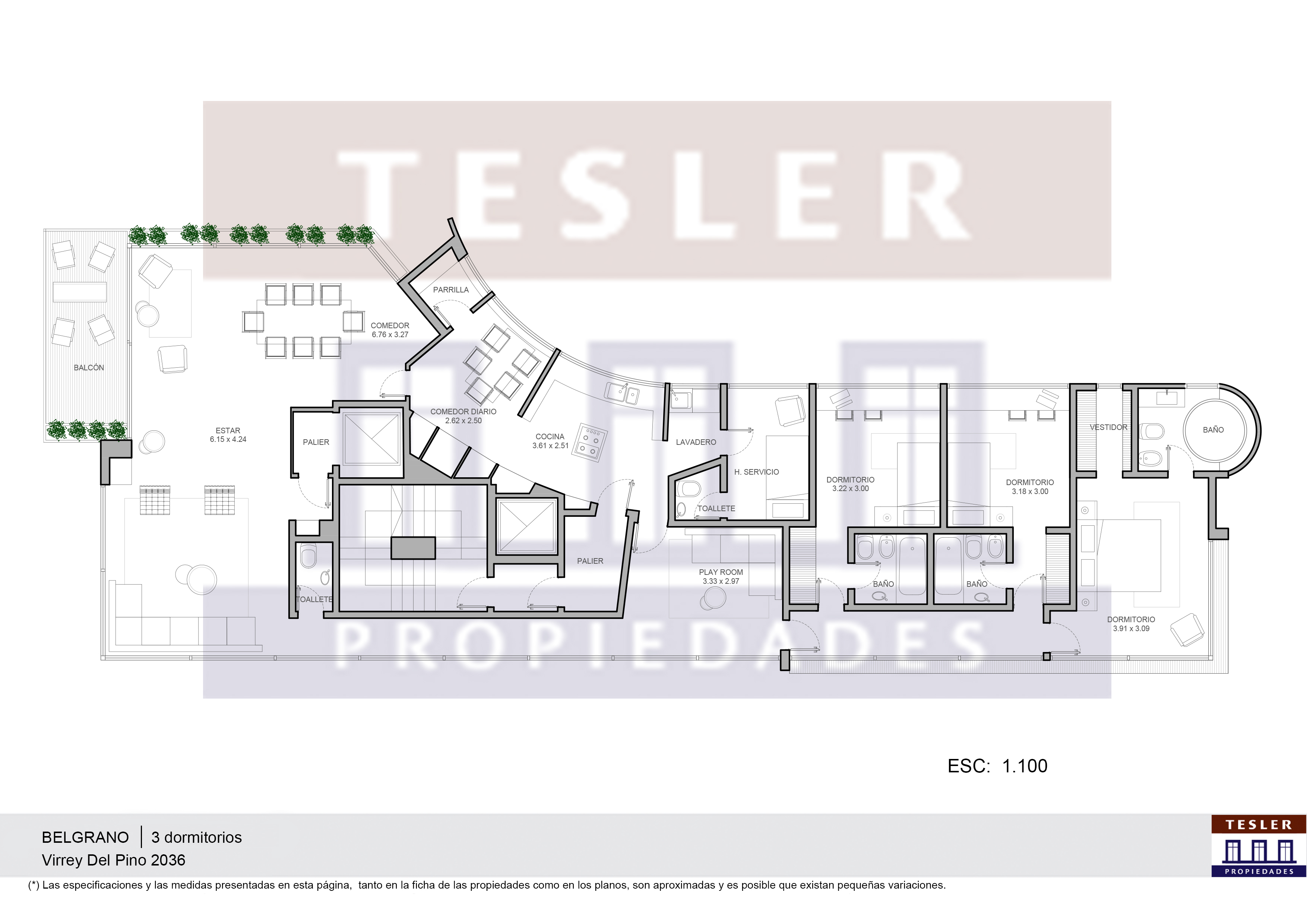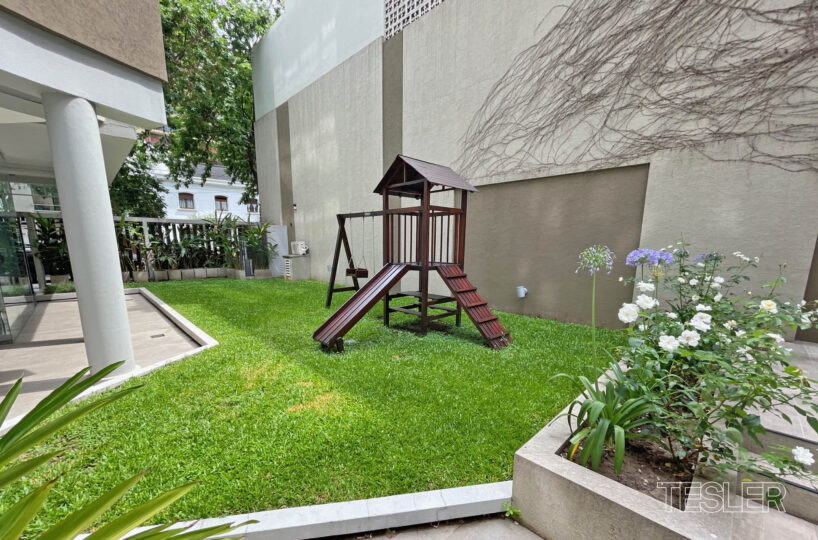 Piso en torre. Antigüedad 5 años. Living comedor. 3 dormitorios en suite. Principal con vestidor. 3 baños completos. Toilette. Playroom. Cocina con comedor diario. Lavadero y dependencia. Parrilla propia. Vigilancia por tótem. 2 cocheras fijas. Pileta in and out y juegos para niños.
