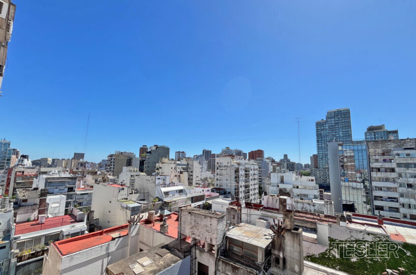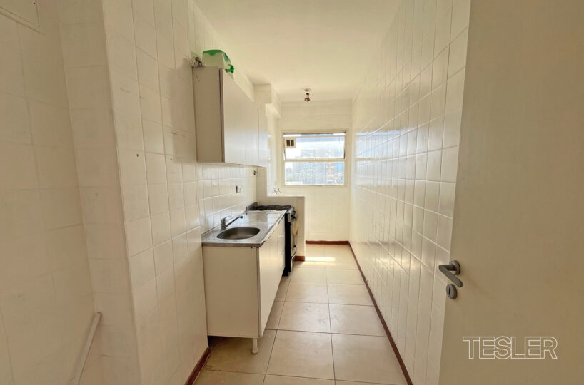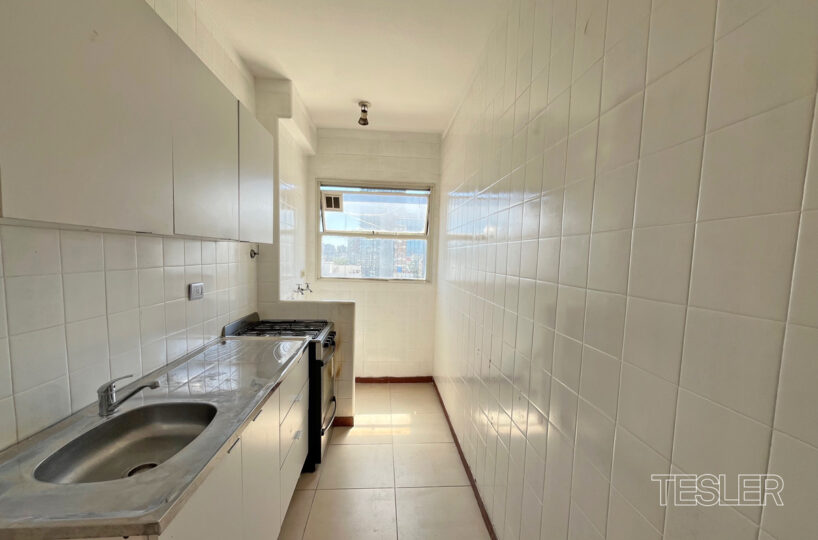 Piso muy alto en torre con excelente luz y vista. Living comedor. 2 dormitorios. Baño completo. Cocina independiente con lavadero. Cochera. Vigilancia 24hs.