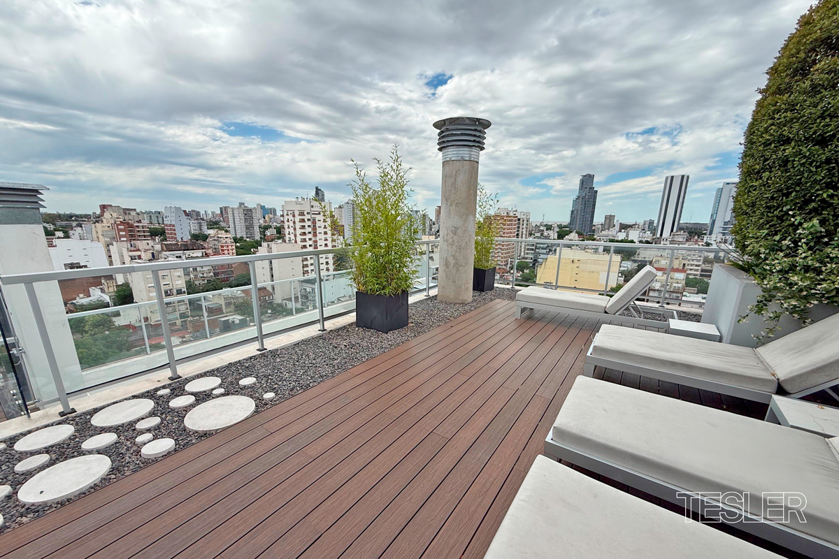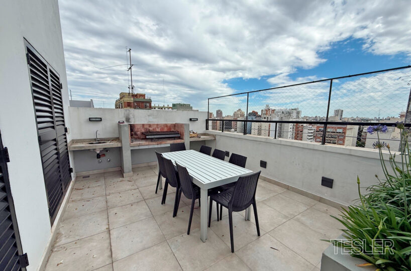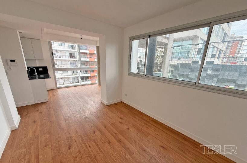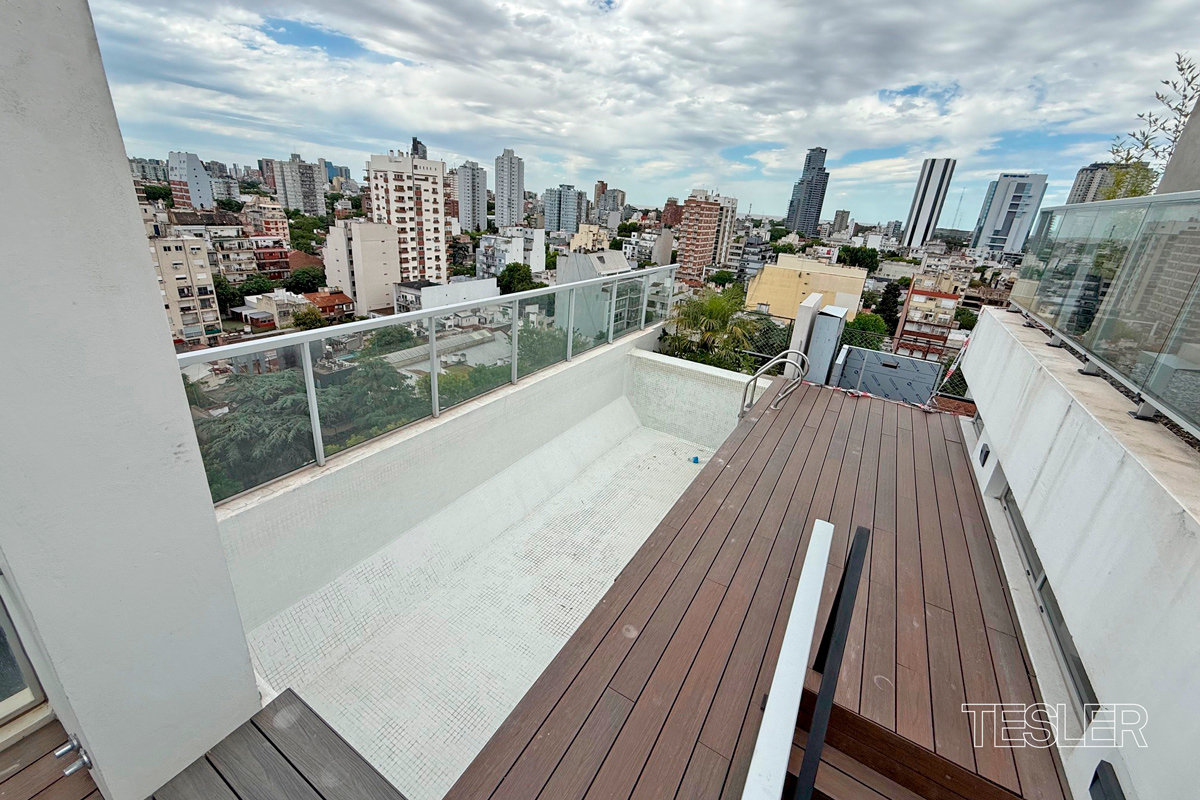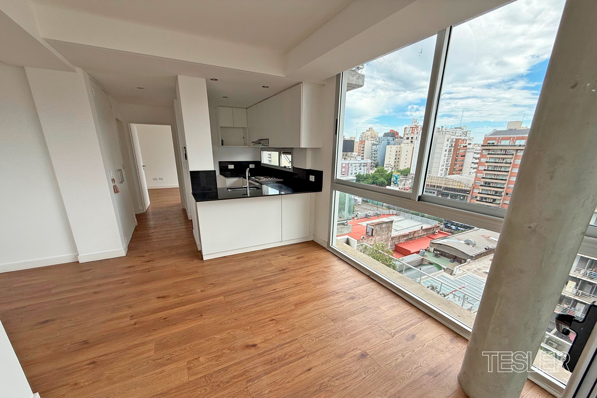 Piso alto con excelente luz. Living comedor. 1 dormitorio en suite con vestidor. Toilette. Amplia cocina integrada. Balcón aterrazado. Lavadero independiente. Cochera fija y cubierta. Pileta, SUM y parrilla. Alquiler más gastos.