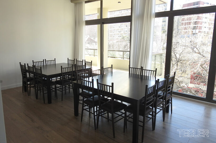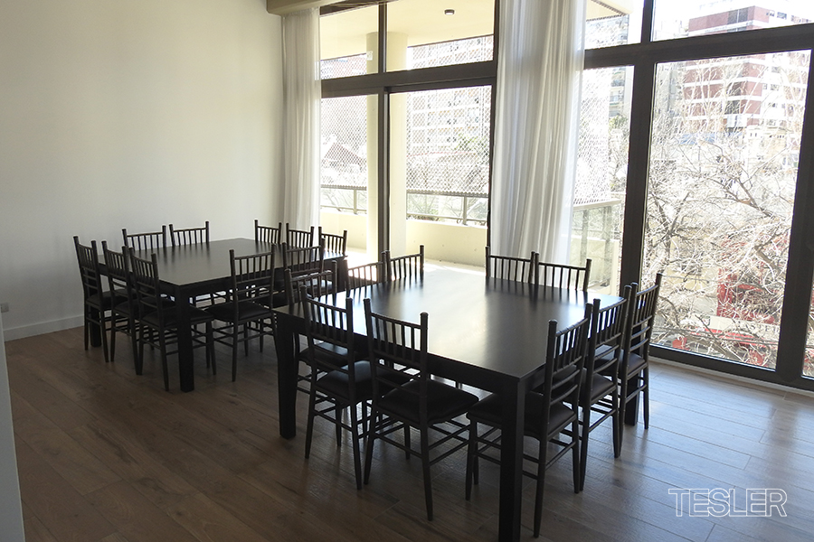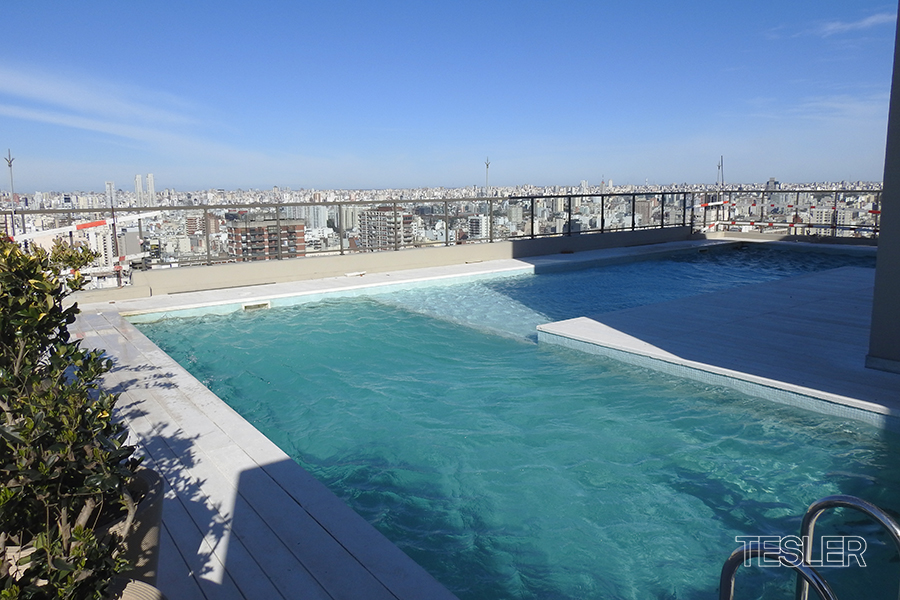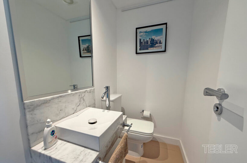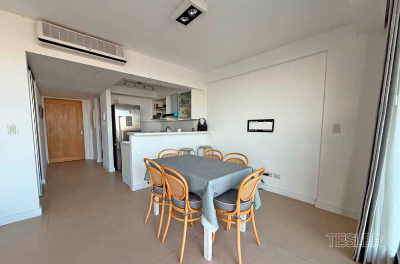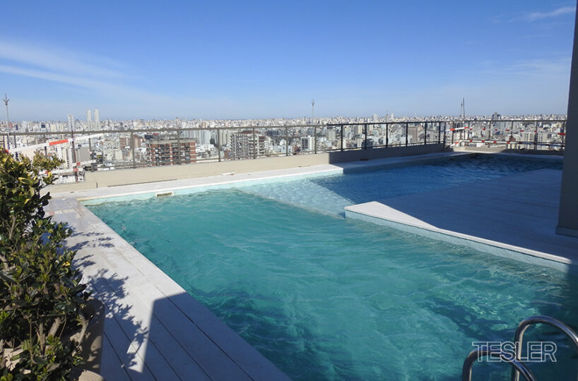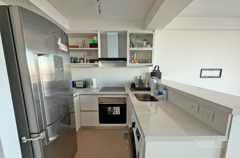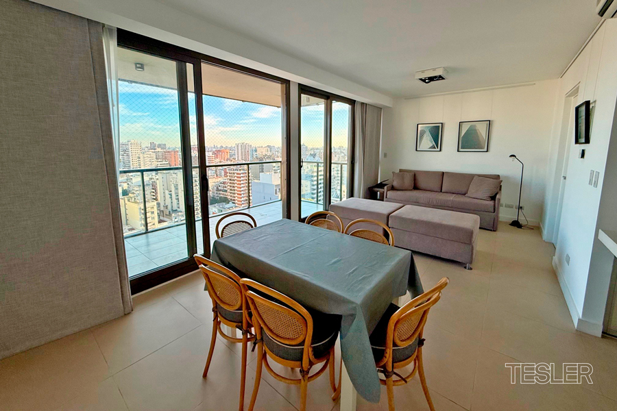 Piso muy alto. Mono ambiente divisible. Baño completo. Toilette. Cocina. Balcón. Vigilancia 24hs. Planta Baja Libre. Lobbies de Categoría en Triple Altura. Áreas Parquizadas. Accesos Controlados. 4 Subsuelos de Cocheras. Spa. Fitness Center. Piscinas Descubiertas. Kids Zone. Salones Gourmet. Salones de Eventos. Alquiler más gastos.