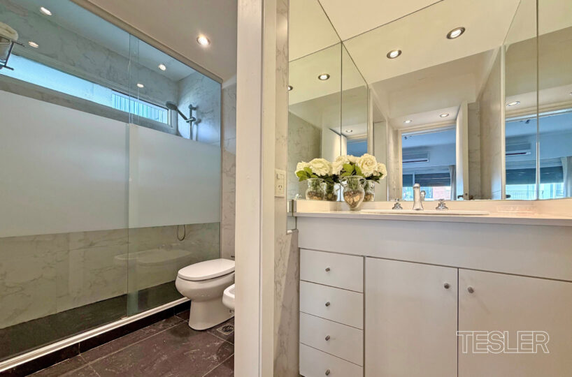 Front-facing semi-floor residence with excellent natural light. Living and dining room. Study and playroom. 3 bedrooms, 1 with private bathroom. 2 bathrooms. Guest toilet. Kitchen with spacious breakfast area. Laundry room and staff quarters. Designated parking. 24-hour security.